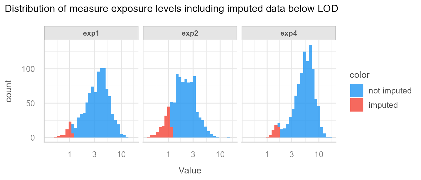 We see that imputed data is below LOD, and seem to have been drawn from the correct distribution.