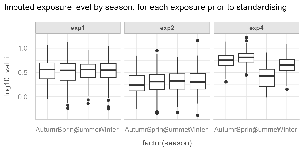 title = "Imputed exposure level by season, for each exposure prior to standardising"