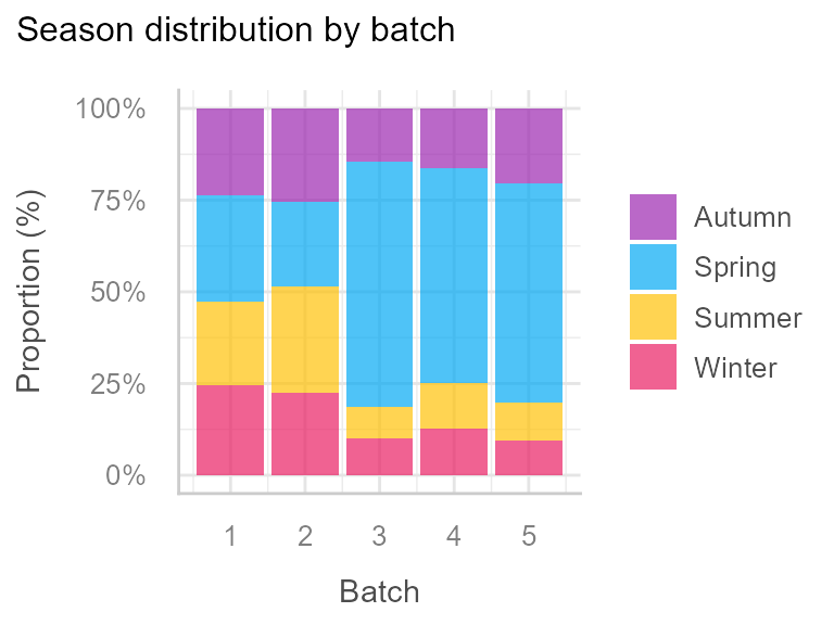 And finally we observe an unequal distribution of season by batch: